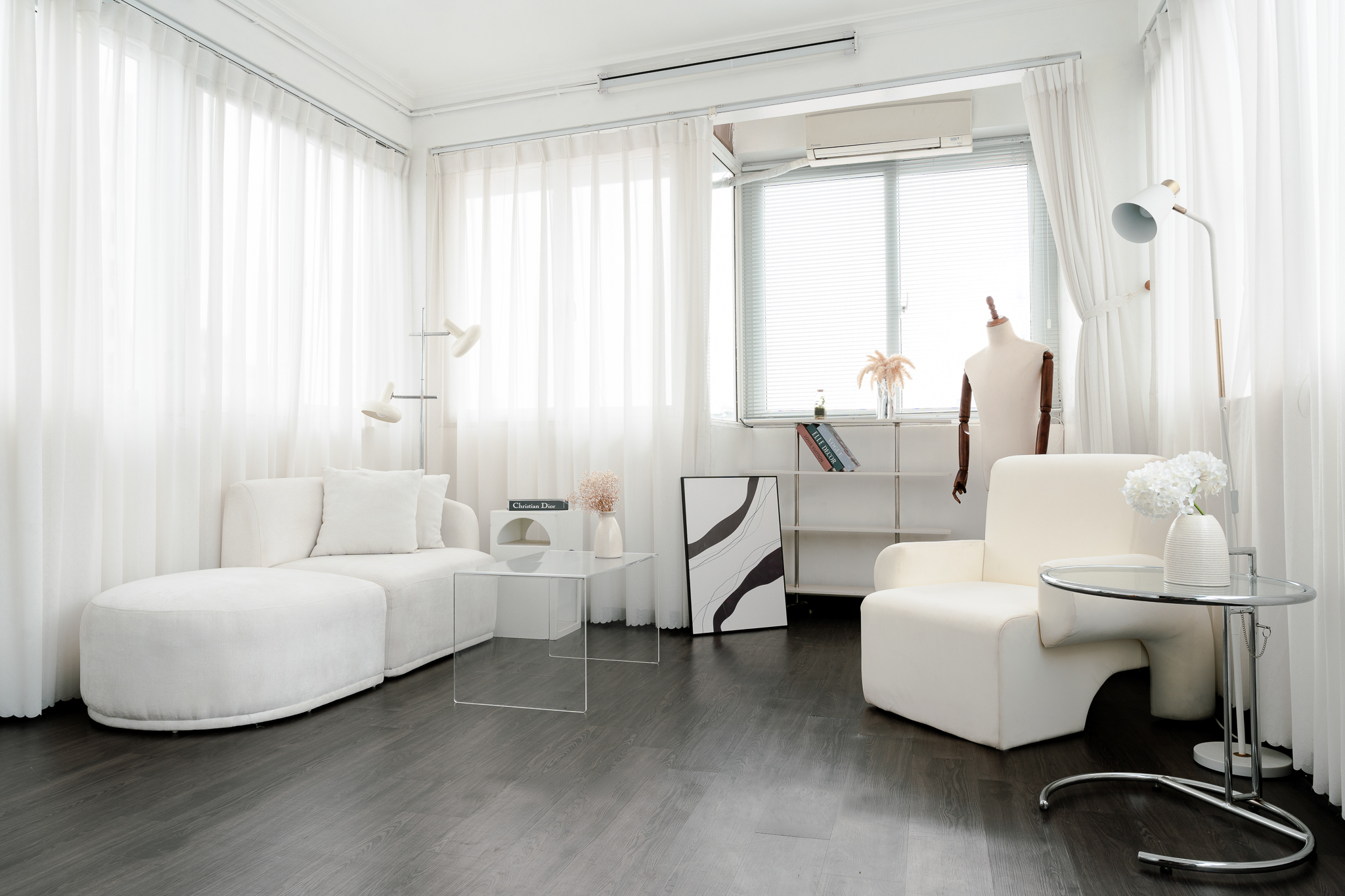 - Nội thật tối giản, tông trắng chủ đạo