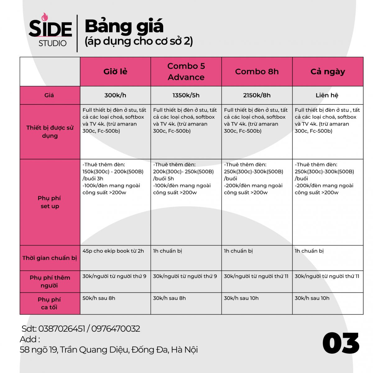 - Đã bao gồm điều hòa, wifi, phòng thay đồ, khu make-up.