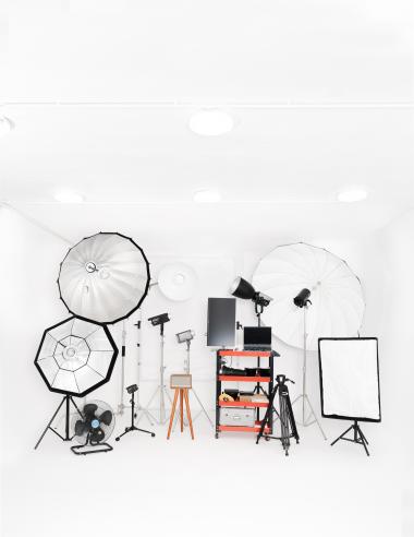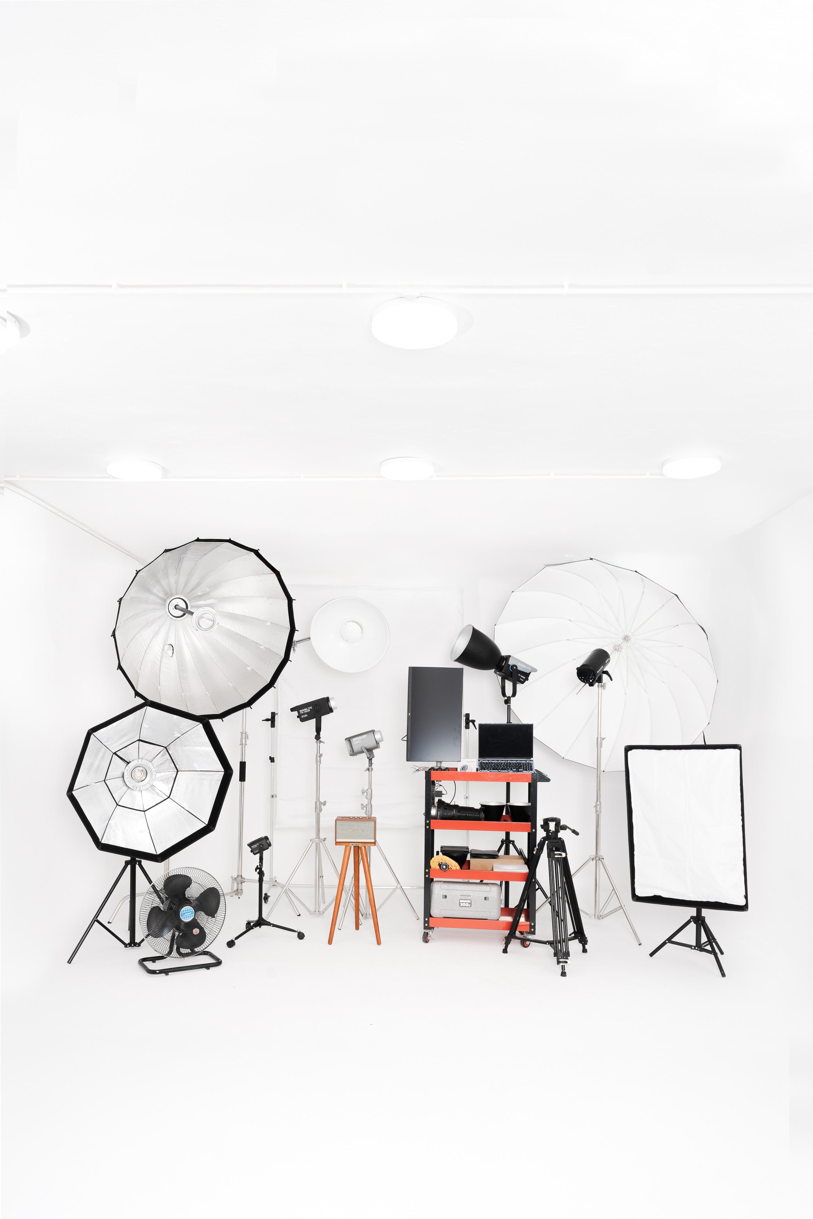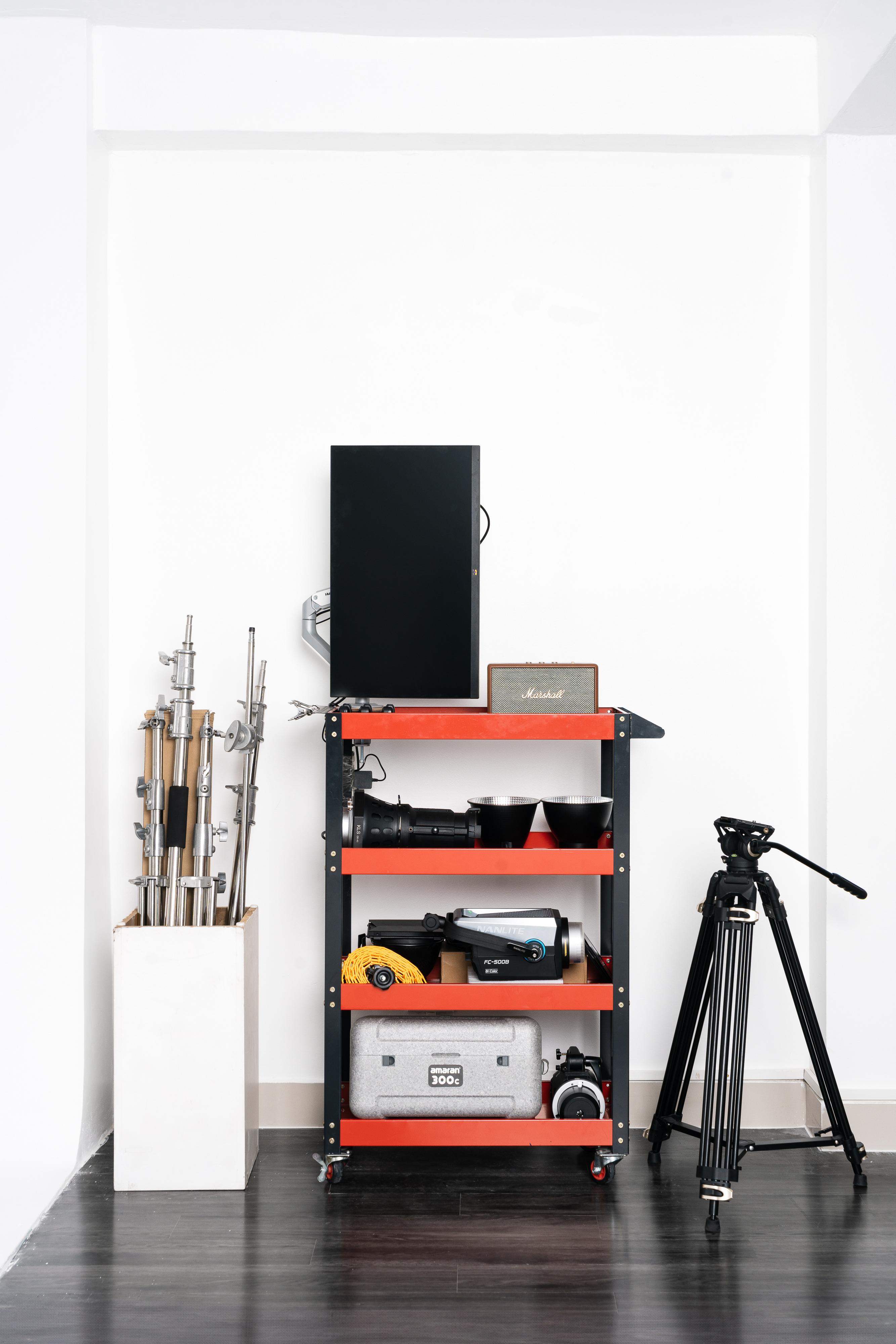- Kho thiết bị, đèn và softbox hiện đại